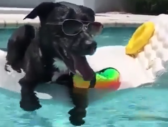 A) It means that the dog finally cools off by soaking in the pool; at last, he feels comforted.
