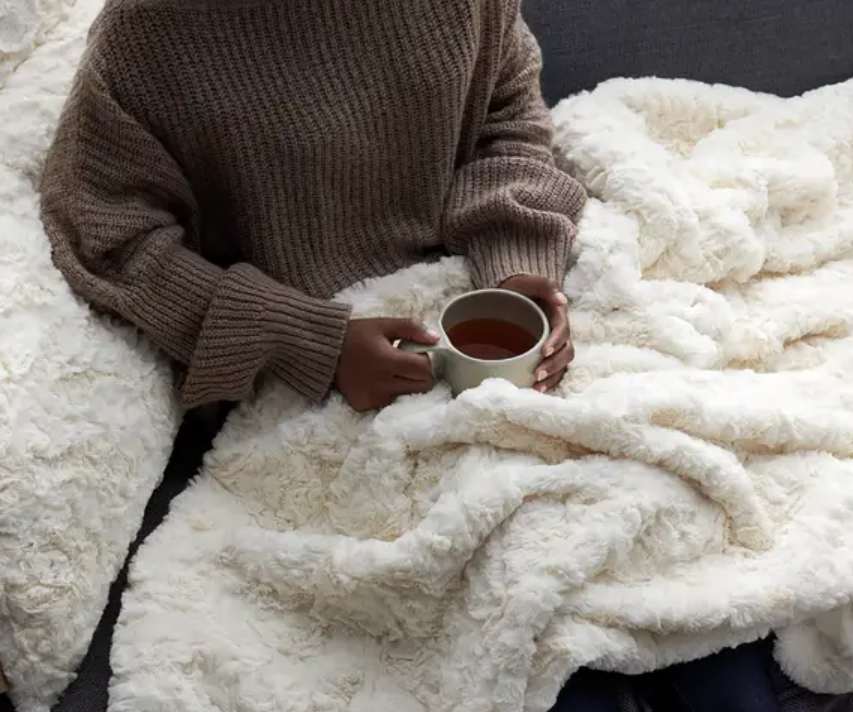 A cozy sweater or blanket is soft and fluffy, making you feel safe, warm, relaxed, and protected.