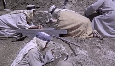 Below, this archaeologist has just discovered a skull! He's dug it up out of the ground. A skull is a very exciting discovery.