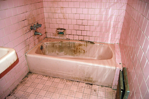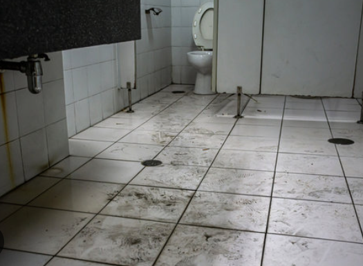 Have you ever visited a filthy public restroom? There's mud and dirt on the floor, hair and chunks of food in the sink, and pee and poop everywhere. GROSS! Back away from that filth! No matter how badly you need to use the bathroom, don't use a filthy one. Ughgh.