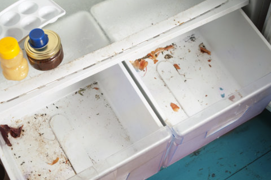 If I didn't clean inside my fridge for two years, it would get filthy! There would be smears of dried orange juice on the shelves, and blobs of crusty hummus in the drawers. I'd open the fridge one day and think, "EW. I've really got to clean off all this filth."