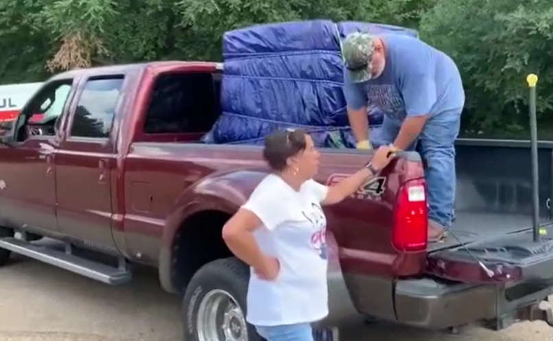 Often it's people who haul things, but it can also be animals or vehicles that haul things. When people in Mississippi desperately needed water, these folks in Texas used their truck to haul three pallets of bottled water to the people in need.