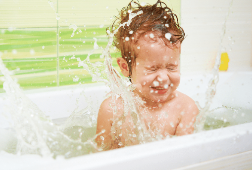 Some kids love to get in the bathtub and splatter the water all over the walls and the floor. That makes a huge mess! And if you splash water onto your face like this, you'll probably splatter some on the counter and the floor.