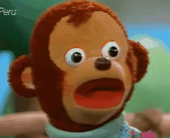 Someone has stunned this dinosaur! Maybe his wife just told him, "Guess what? We're having seven babies!" He's stunned, so he's just standing there, eyes wide, mouth open, too stunned to realize that he's dropping his drink.