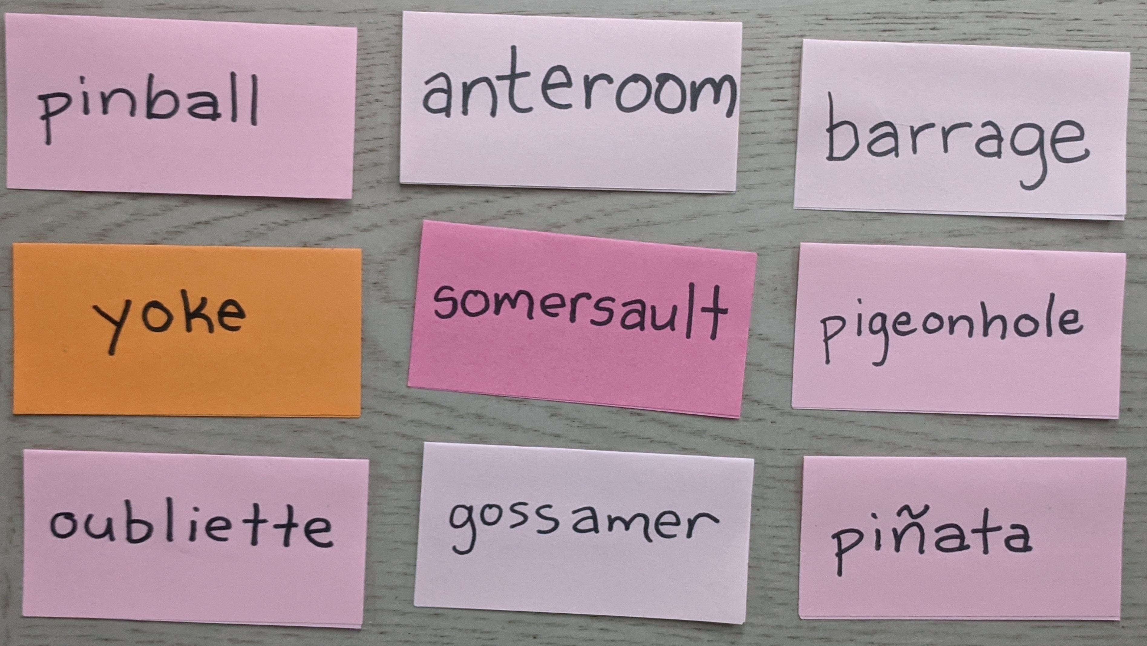 oubliette, gossamer, piñata.