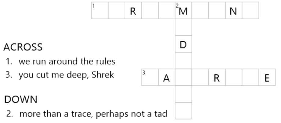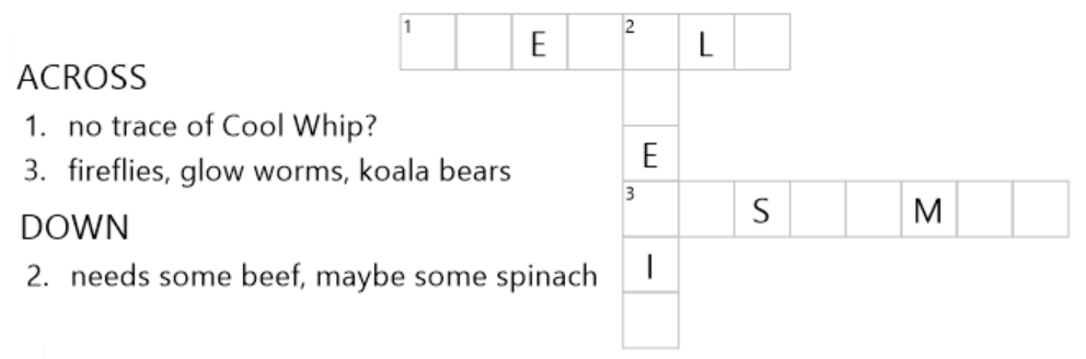 Each day this month, see if you can complete the mini-crossword with words we studied last year. If you need extra clues, look below the puzzle to view definitions and parts of speech. And I'll share the answers in the following issue. Enjoy!