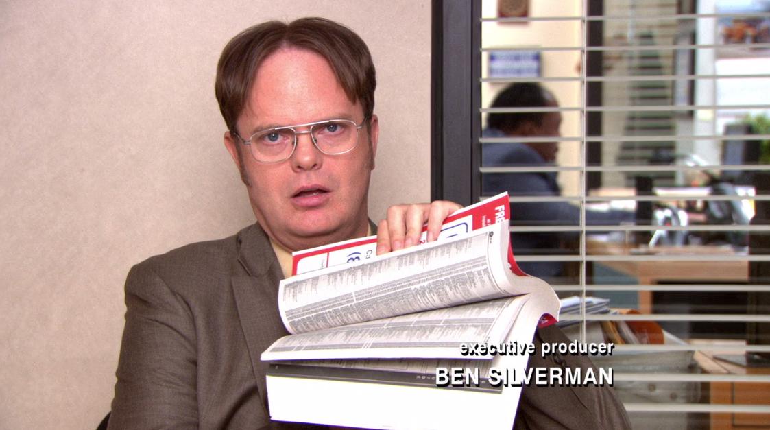 And sometimes we get very literal. Here's Scientific American: "Try pulling apart two interleaved phone books and you'll inevitably be defeated by huge frictional forces." For the kids who've never seen a phone book, I totally would have made you a gif of me attempting to do this, but I haven't spotted a single phone book since 2003, let alone a pair. I'll let Dwight Schrute show you one.