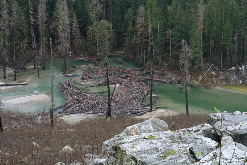 Just like it sounds, a logjam is a group of logs jamming up a river, interrupting its flow.