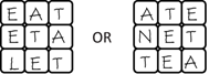 That's not so easy! In that first solution, you could fit EAT, ETA, and LET in the rows only because the columns then spelled valid words, too: EEL, ATE, and TAT.