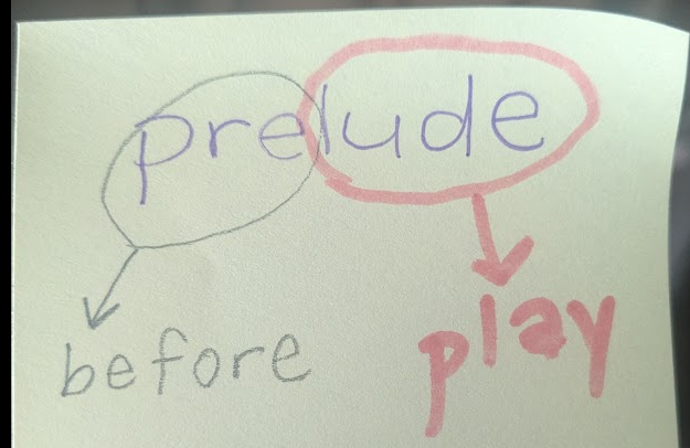 Explain the meaning of "prelude" without saying "lead-in" or "beginning."
