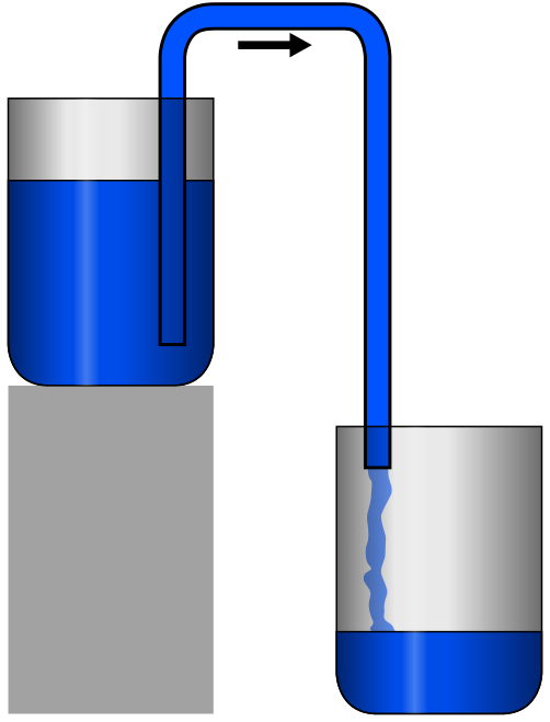 "SIPHON" In the picture above, the blue tube is a siphon: a bent tube or pipe that allows liquid to flow from one container into another.